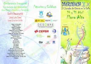 Nuestros compañeros de la Asociación de Amigos de la Ciencia Diverciencia de Algeciras, convocan sus IX Jornadas de Ciencia en la Calle para la semana que viene, concretamente los días 14 y 15 de abril. Allí estará una delegación del Club Científico Bezmiliana. Nos piden que demos difusión al evento. Publicamos carteles y tríptico (para verlos con más detalle hacer clic encima de cada uno de ellos). ¡Nuestras felicitaciones a nuestros amigos de Algeciras!