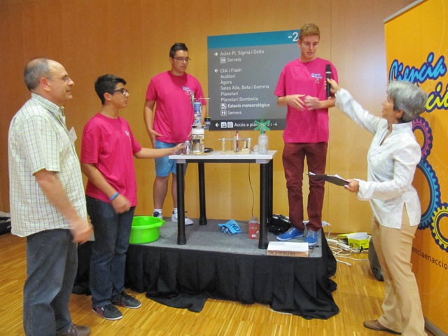 El Club Científico Bezmiliana ha estado muy presente este año en Ciencia en Acción. Por un lado participábamos con tres trabajos: A toda máquina, dirigido por José Antonio Navarta; Nuestro homenaje al año internacional de la cristalografía: cristales Bezmiliana XL, y Cristalización del cloruro de sodio, dirigidos ambos por Inma Durán y Ana Martínez. Acompañados por un nutrido grupo de alumnado del propio Club, que también han viajado a Barcelona, lugar donde se ha celebrado el evento. Todos estos trabajos, profesorado y alumnado han recibido el premio Ágora que concede el público juvenil, es decir, el jurado constituido por aquéllos a los que va dirigido todo este tinglado. Por otra parte, Ana e Inma, por su dilatada trayectoria en este certamen, han recibido la Medalla de Honor de Ciencia en Acción. Cosa esta nada fácil, ya que la participación está sometida a un exigente filtrado previo en competencia con una gran cantidad de trabajos, de los que sólo algunos pocos pueden finalmente asistir. Hacerlo seis años seguidos es todo un logro que ha sido reconocido por la organización del certamen.
