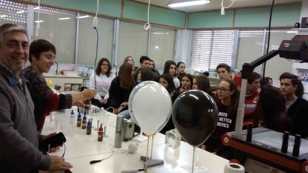 Con bastante retraso, debido a problemas en nuestras páginas por un ataque informático (un programa ha colonizado nuestra revista para enviar spam), damos cuenta de la visita que Carmen Guerra y Sebastián Cardenete, del Centro de Ciencia Principia, hicieron para impartir un taller de Óptica a alumnado de 4º de ESO. Damos fe de que fue magnífico y que nuestros alumnos y alumnas quedaron encantados con los preciosos experimentos que Carmen y Sebastián fueron desgranando en nuestro laboratorio. Muchísimas gracias por vuestro trabajo. Acompañamos una imagen del acto.