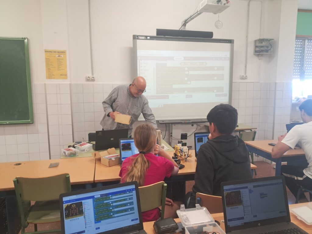 El pasado día 25 de Abril, hicimos la II edición del «taller de Robótica», impartido por el profesor de Tecnología del I.E.S. Bezmiliana D. Aquilino González. El taller fue una introducción a la robótica, donde participaron padres con sus hijos/as, alumnado, familiares y amigos/as. Los asistentes al taller se iniciaron en la programación de la tarjeta microbit y del robot maqueen mientras jugaban.