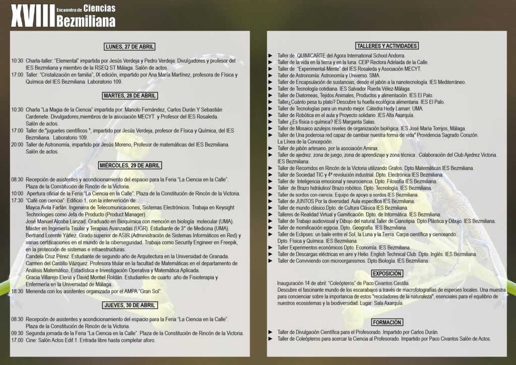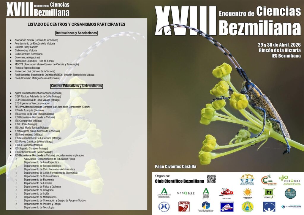 Nos llena de ilusión celebrar una nueva edición de nuestro XVIII Encuentro de Ciencias Bezmiliana. Este evento, ya plenamente consolidado, pone de manifiesto año tras año la entrega y el entusiasmo del grupo de profesores y profesoras que integran el Club Científico Bezmiliana.